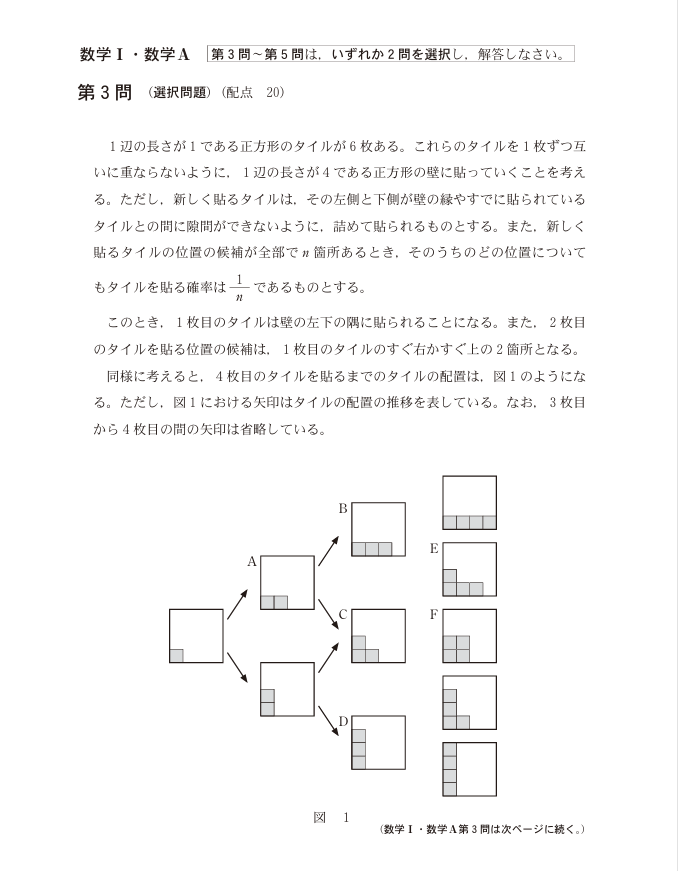 一昨年度の共通テスト追試の数ⅠAの問題です。